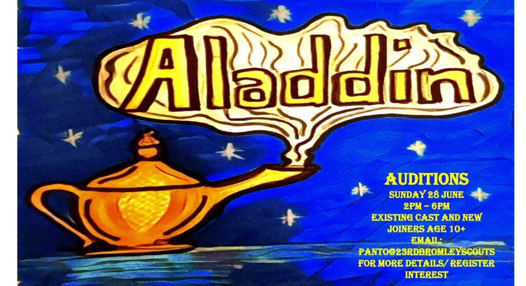 23rd Bromley Scout Panto group are looking for enthusiastic young people to join our cast. This year sees a change of leadership team, and the loss of some of our long term cast as they head off to uni or move to roles behind the scenes. Roles vary from only a few lines to nearly always on stage or backstage and props so something to suit everyone.